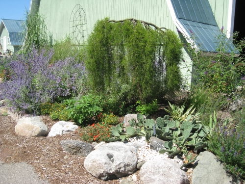 “Xeros” being Greek for “dry”, the Xeriscape garden is an example of a water-wise garden. It was established with drought tolerant plants which are adapted to sandy soils. Once established, the garden requires minimal watering and then only in long periods of drought. Designed by Tollgate Garden Volunteer Donna Mrozek, this area has recently been expanded to surround two sides of one of the Tollgate barns.