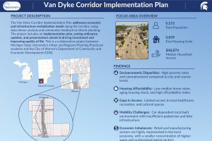 This study analyzes its socio-economic, building, zoning, commercial market, and a transportation conditions of the corridor of West Huron that runs between Woodward Avenue and Telegraph Road in Pontiac. -