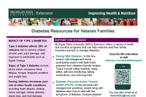 This tip sheet contains the most relevant information about diabetes resources for veterans. Facts, key points, resources and actionable items are offered in a clear, concise, and easy-to-understand way. -