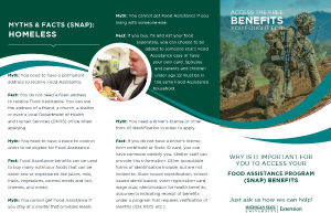 This is a tri-fold with common FAQ for SNAP for veterans as well as myths and facts about SNAP for veterans. -