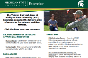 The Veteran Outreach team at Michigan State University (MSU) Extension compiled the following list of resources for veterans and their families. -