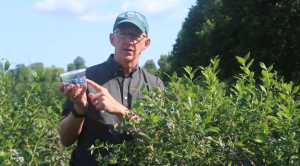 In this video we will demonstrate how to use the filter method for sampling for spotted wing-drosophila larvae in blueberries. This is a quick and easy sampling method that growers, scouts, and extension agents can use to determine whether larvae are present in their fruit. While this video shows how to use this method for blueberries, it can be used for other fruits such as raspberries, blackberries or cherries. Dr. Rufus Isaacs from Michigan State University will be talking through the different steps of this method in this video. We begin with the first step, picking ripe fruit in the field. So today I'm going to demonstrate the salt filter method with these blueberries here that we have at the Trevor Nichols Research Center in Fennville, MI. These are ripe now, so it's time to start sampling them to see if they have spotted wing drosophila larvae in them and we're going to demonstrate this method to you today. So typically what we would do is sample from an area like this. This is up next to a woods, so it's likely to have a bit more pressure than other parts of the field. So we sample and take a minimum minimum of 4 to 8 ounces of fruit. So these are ripe blueberries and already taking some of them, but you can see we would just go through the bushes a nd take the sample of ripe berries from around this area. And then we might take multiple samples from the field as well if we wanted to see different cultivars had different levels, or if different parts of the farm had different levels of SWD infestation. So put it in this container, mark it. I've got the field number here and the date, and that can just keep track of the sample later on as we go through this processs. For the second step, Rufus will demonstrate how to process the blueberries once all of the samples have been picked. OK, so we just picked these fruit from the field, these blueberries, fresh blueberries that we're checking to see if they have spotted-wing drosophila larvae in them and we do that by giving them just a light pressing to get them ready for this test. We don't want to squish them because then that will plug up the filters later. But we're going to take these two samples do that light pressing action and then this is a solution of salt water. We have one cup per gallon of salt water here so it's a strong solution and we pour that in to cover the berries. You can see there we've got two containers the liquid is covering those berries and then we can leave this solution together for like 30 minutes i s the minimum. We often do an hour because that increases the chance that we'll get all the larvae out of there so these can incubate with the salt solution and the blueberries for an hour. And then the salt solution is useful because that actually kills the larvae and then they're able to be seen. If you use just tap water, they'll be wriggling around inside your filter when you're looking at them later. So that's the difference with the solutions you could use just water, but we we like the salt water that kills those larvae in the in the filter. So next step will be to run this through the filter and then we'll look at it under the microscope. In this third step, Rufus will show how to sift the blueberries and salt water through a funnel so that the larvae get caught in the coffee filter. All right, so this is now, this sample has now sat in the liquid for an hour, and we're going to run the fruit and the liquid through there. So that separates the liquid from the fruit. And then we'll take this and give them a wash and an agitation to make sure all the larvae that might be in there come off. And then we can now separate the fruit and that sample can be thrown away. And the larvae, if there are any, should be in this filter that we're going to look at under the microscope. Before we proceed to looking for larvae using a microscope, we are going to take a look at how the sampling process looks in real time. In this case, we have a number of samples ready to be sifted on the left hand side, A bucket for the waste fruit is on the right hand side, and a garden hose with a spray nozzle attachment is easily within reach. With everything close at hand, it takes very little time to process each of these samples. Before we move on, we are going to quickly run through the supplies that are being used in this fruit processing step. The funnel that is being used is a 2 1/2 inch by 10 inch funnel. Inside the bottom of the funnel is a piece of wire mesh. The purpose of the mesh is to keep the fruit in the funnel while the salt water and larvae fall down into the coffee filter. For this video we are using wire mesh that has a hole size of approximately 0.08 inches. The coffee filter we are using is a four-cup reusable coffee filter with a wire mesh bottom. All of these supplies are readily available from online suppliers, or you can adapt this method as needed for your particular situation. Now we are going to move on to using a microscope to look for larvae in the coffee filters. For this step, we are going to use a stereo microscope to look for larvae in the coffee filters. The microscope shown here has a 10X eyepiece and a 0.5 X objective lens. This provides just enough magnification to easily see the very small larvae, but still allows us to have the entire coffee filter in the field of view. This makes looking for and counting larvae a quick and easy process. Microscopes similar to this one can be easily purchased online. While some microscopes can cost thousands of dollars, there are much cheaper options available that will only cost a few $100, and they will work just as well for looking for larvae. However, if you do not have a microscope or do not want to use one, you can also just visually inspect the bottom of the coffee filter for larvae. While you will not be able to see the very smallest larvae, you will still be able to see the medium and large larvae. If you do decide to proceed with only visually inspectin